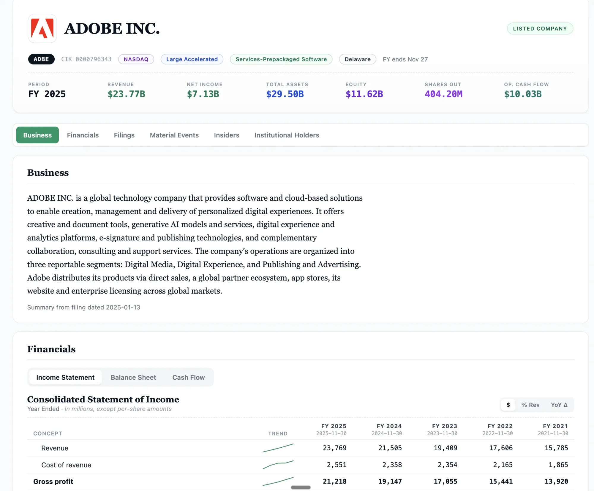 Visit the new Edgar.tools - built for the agentic web. Get realtime AI briefings as filings arrive delivered to your in-app Inbox, email or web hook destination